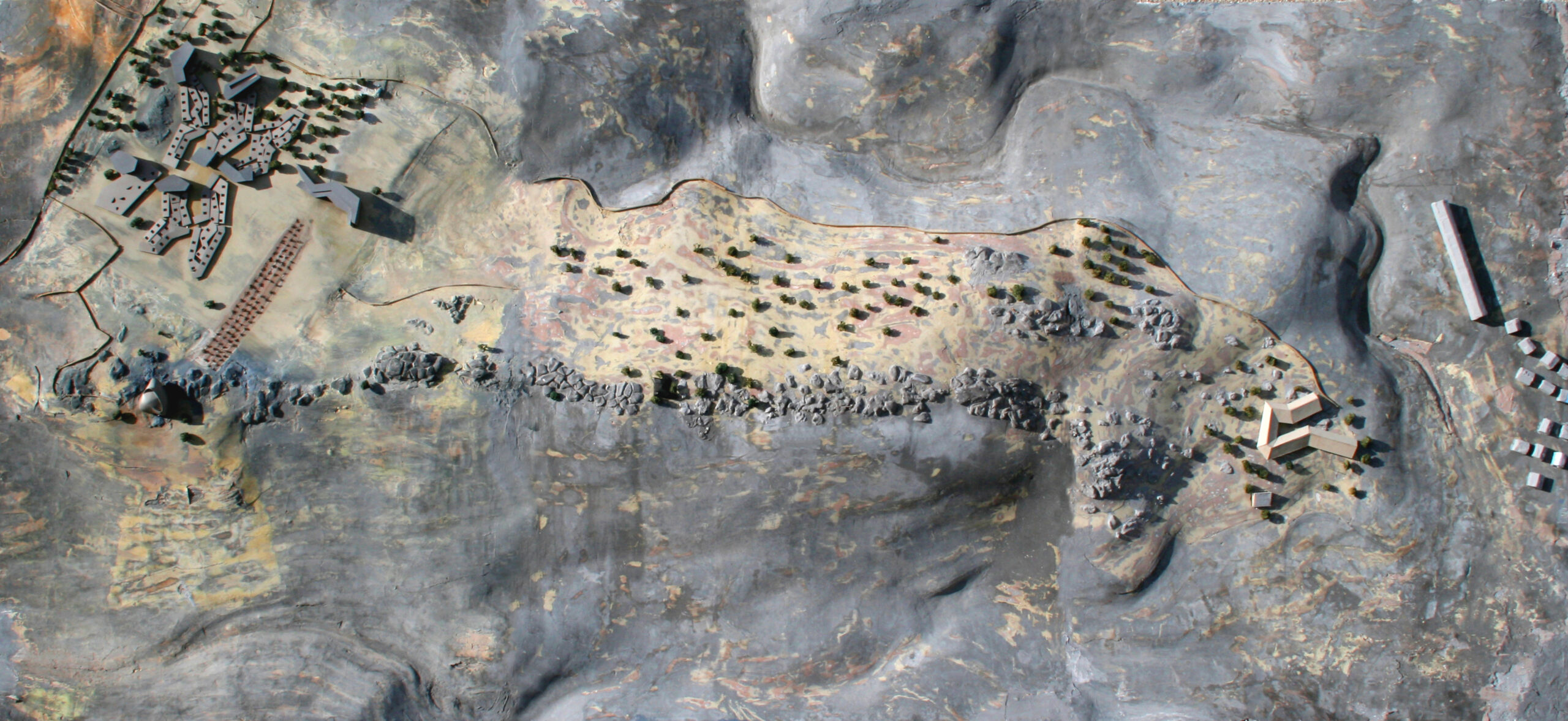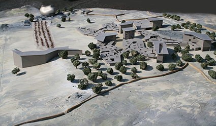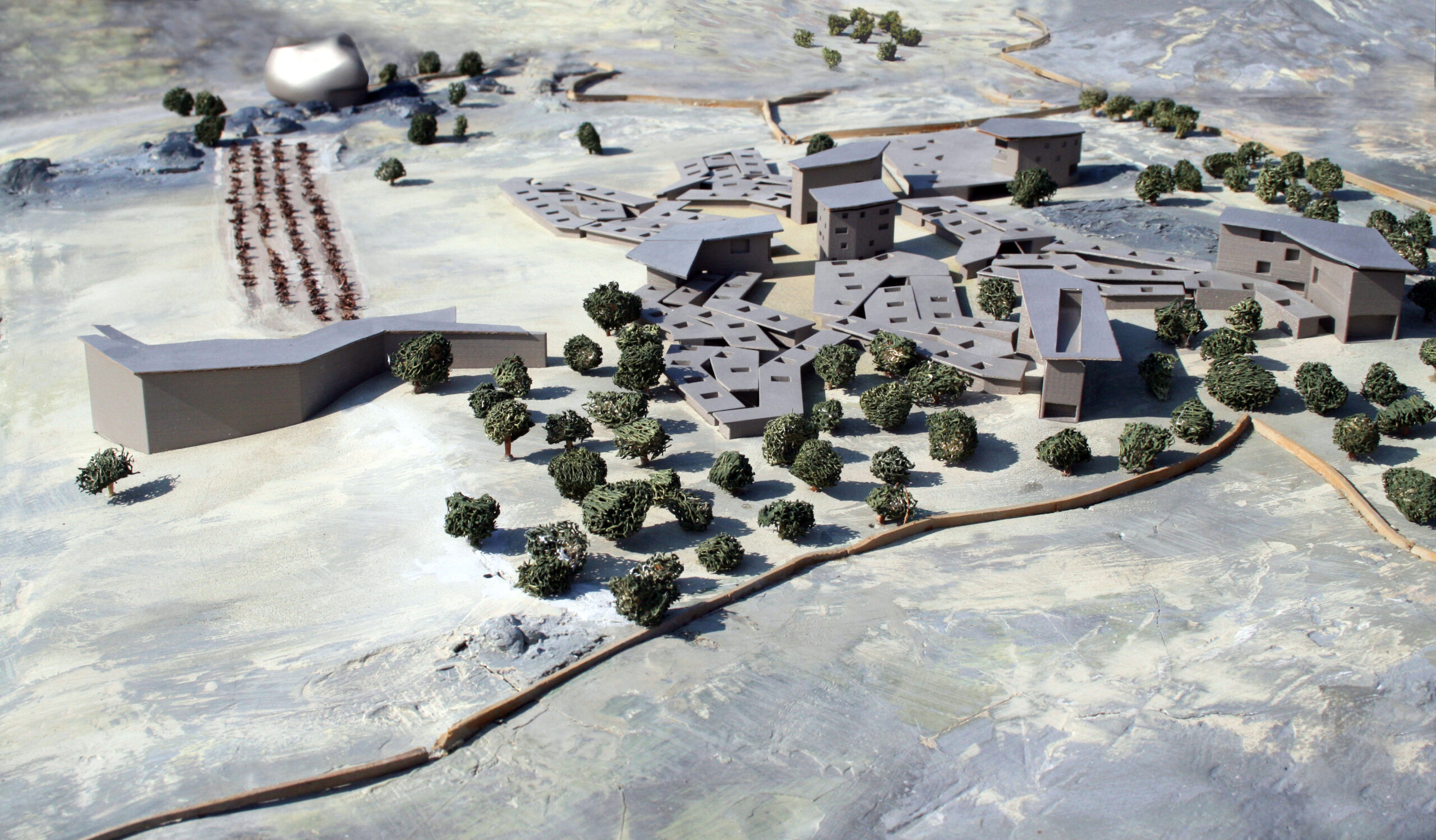 Aware of the ecological dimension and the need to reduce energy consumption that a project of this sort requires, and conscious of our responsibility with the landscape, the architecture is oriented to the sun. The roof, deployed in great surfaces over the earth walls, accommodate a system of water pipes that capture the heat provided by the sun making easier the work of the geothermic pumps.