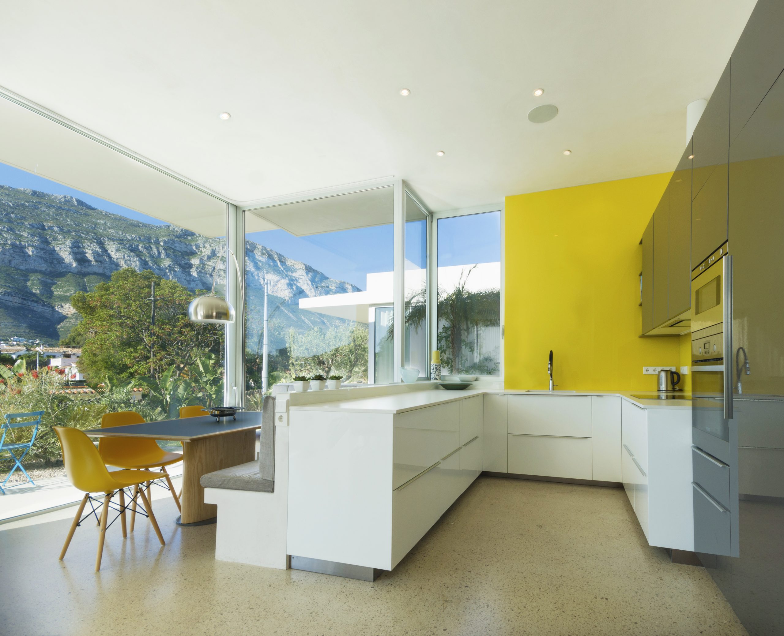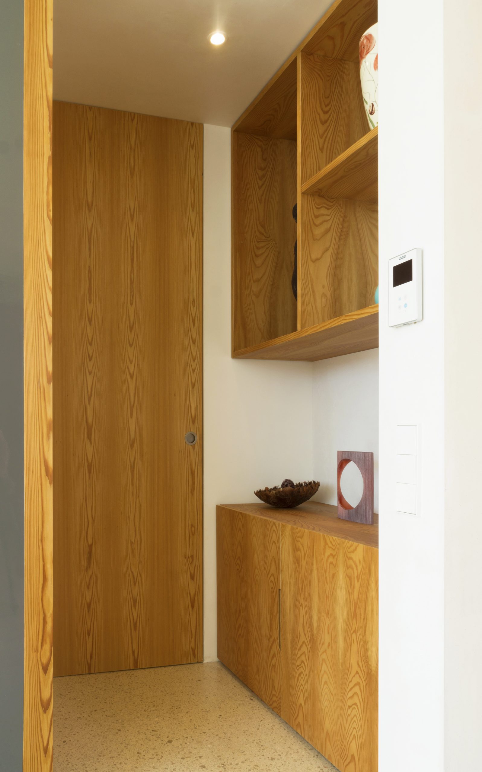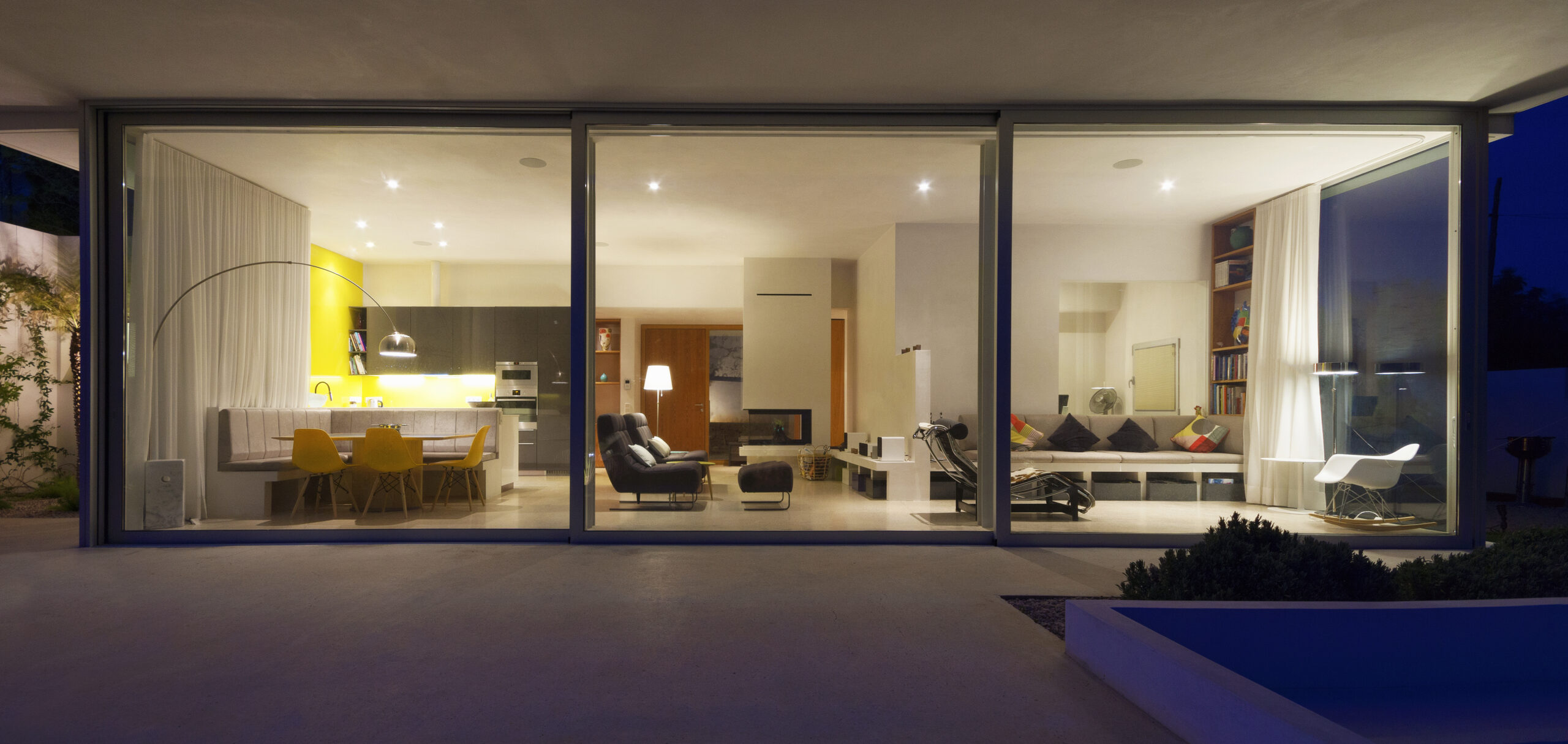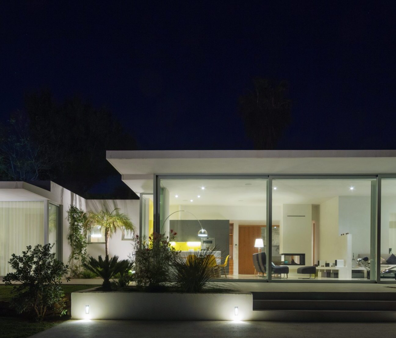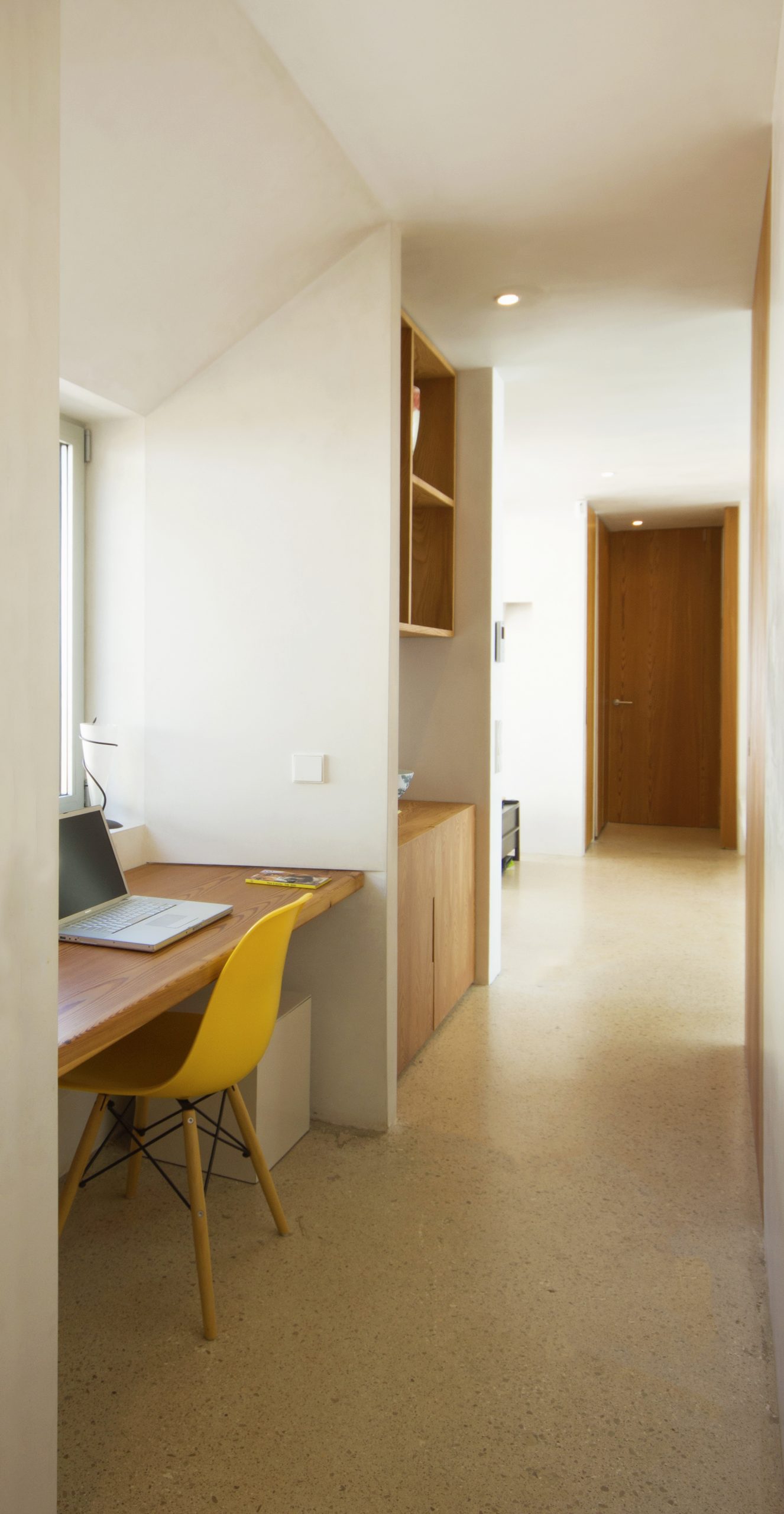 Una joya, blanca y sencilla, esta pequeña construcción de 120 m2 mira siempre al Montgó, cuya poderosa presencia lo convierte en un habitante fundamental de la casa. Al norte, es pequeño y concentrado, un muro blanco con sólo algunas pequeñas aberturas. Abierta y esbelta a la luz y a la montaña, su fachada sur está formada por enormes paneles correderos de cristal y voladizos de tejado diseñados para proteger el interior del intenso sol del verano. Pavimentos de hormigón pulido, paredes de yeso y paneles de arce componen la paleta de materiales utilizados para construir el espacio.