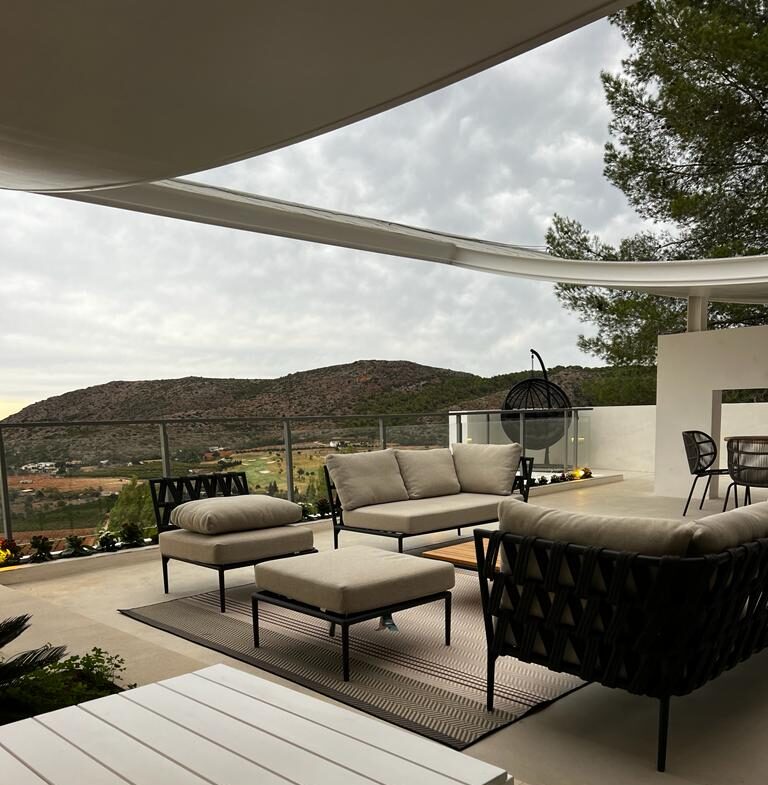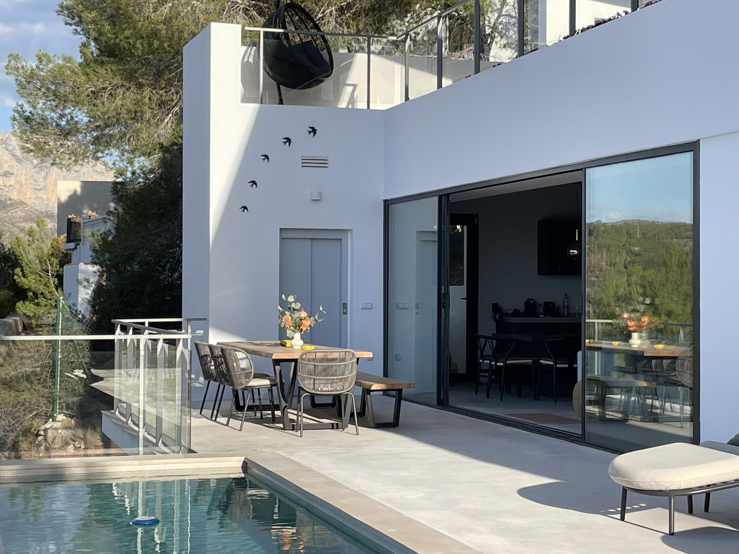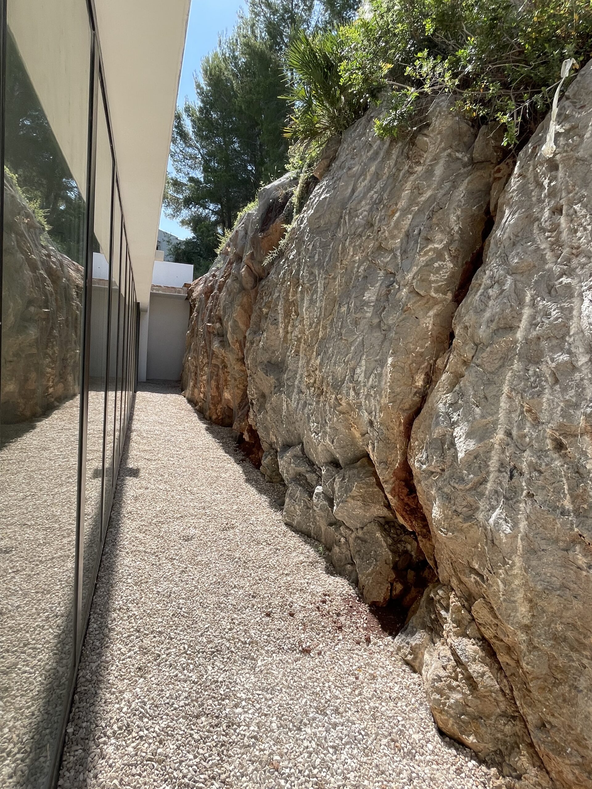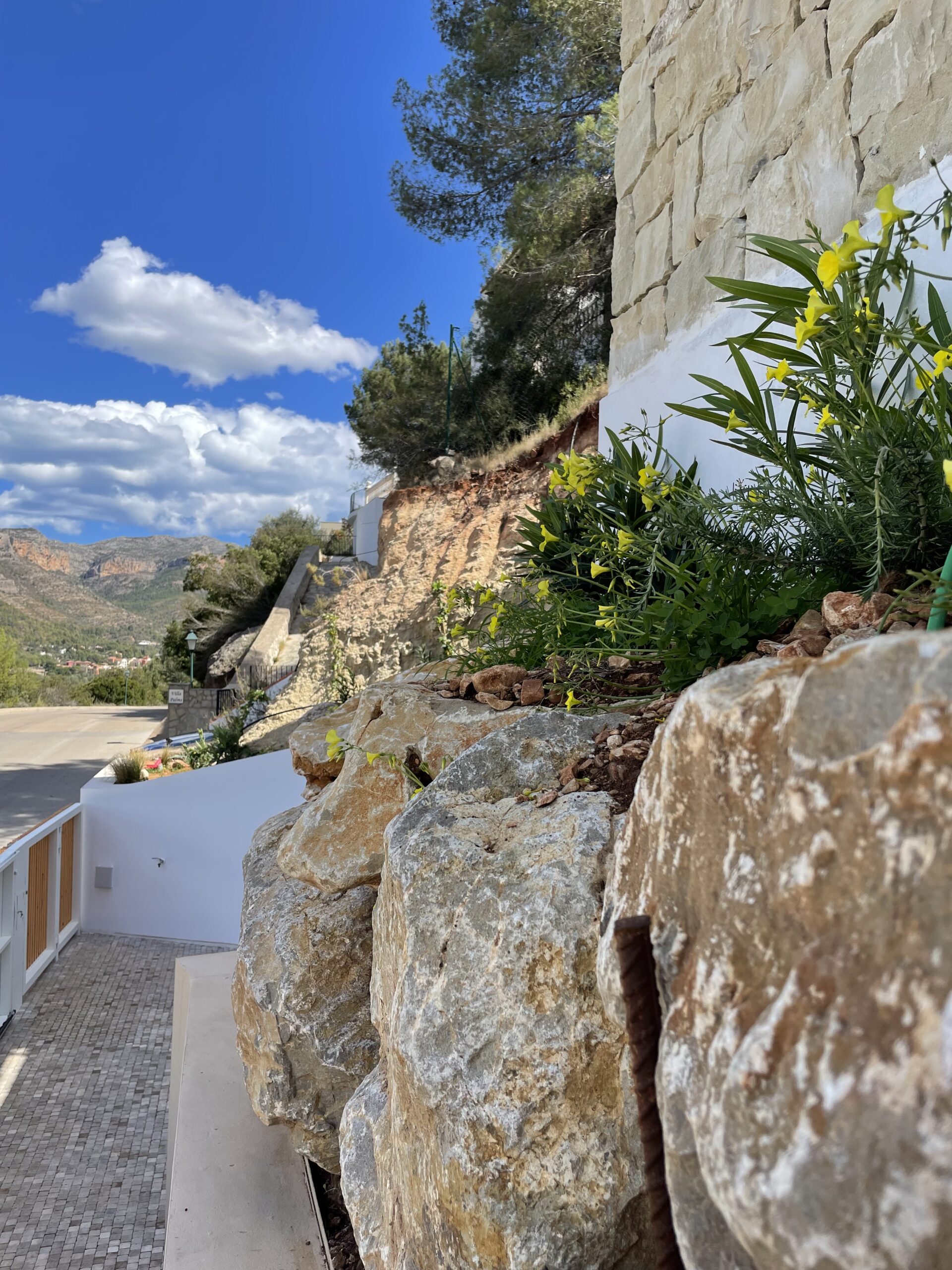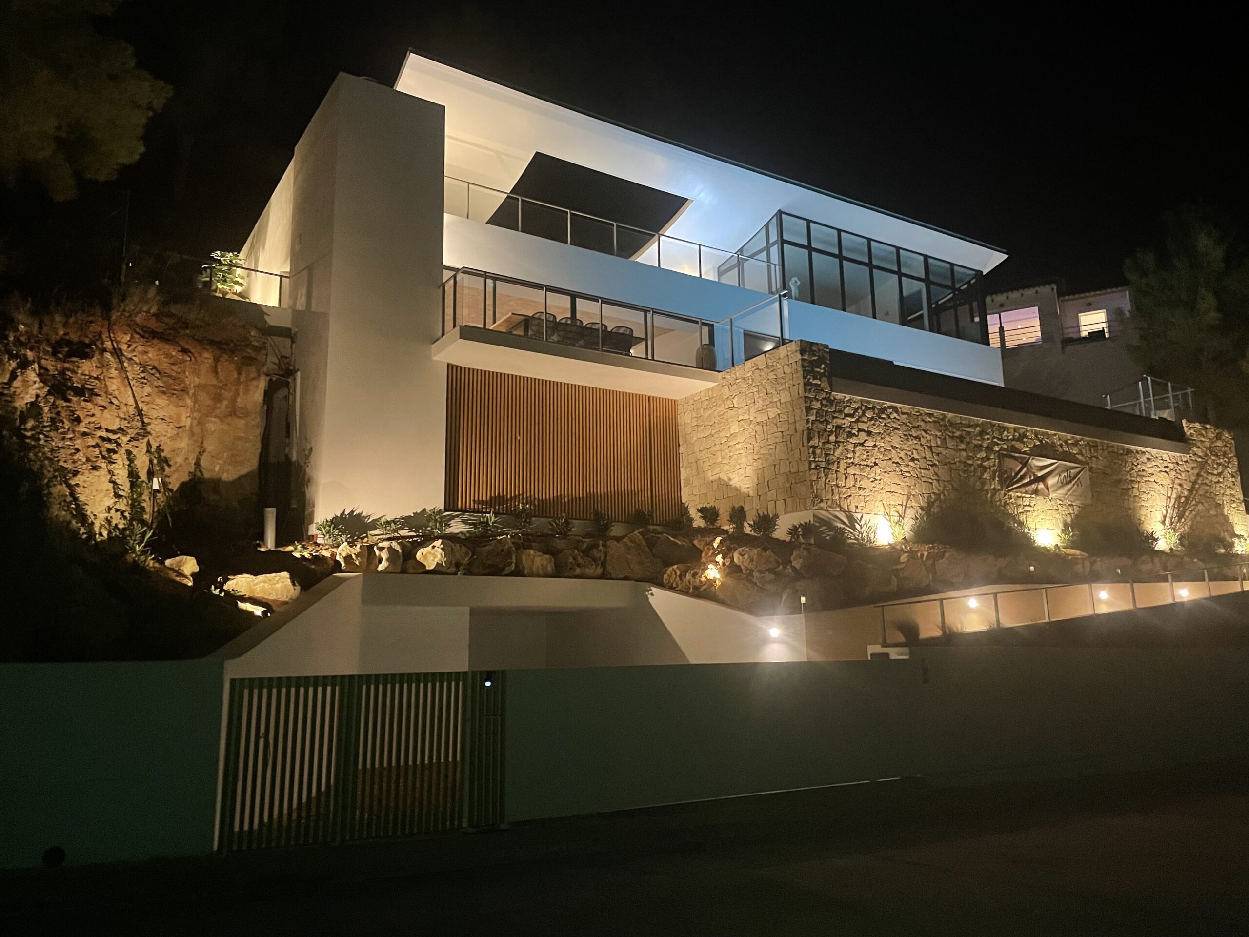 Taking advantage of the topography of the plot, the house is situated on a platform 6 metres above the Av. de la Marina Alta. The house is organised