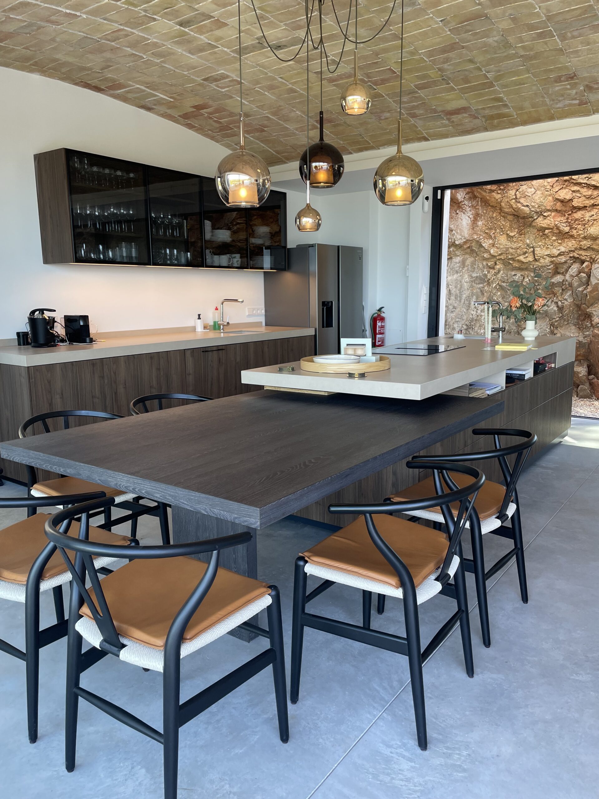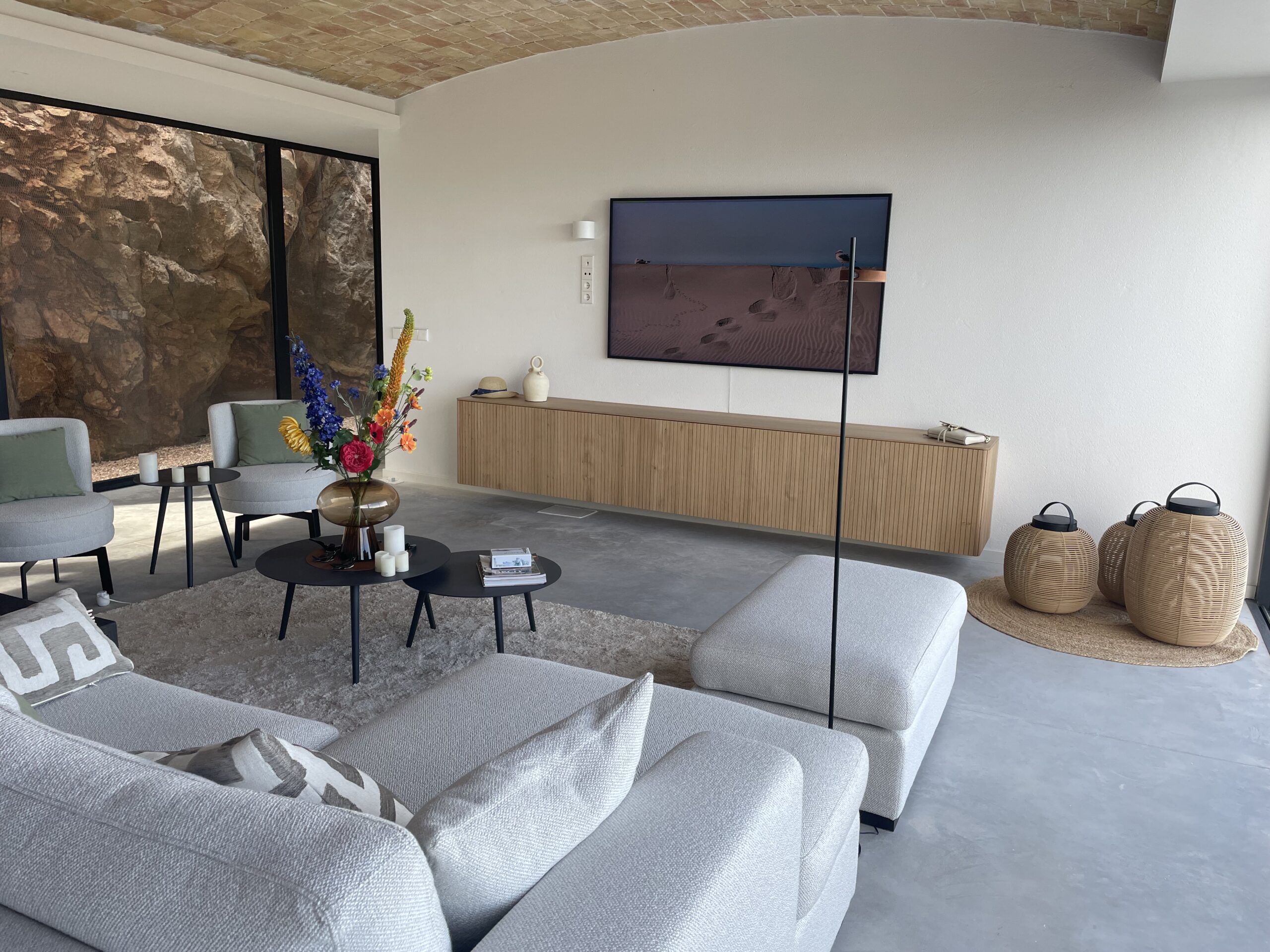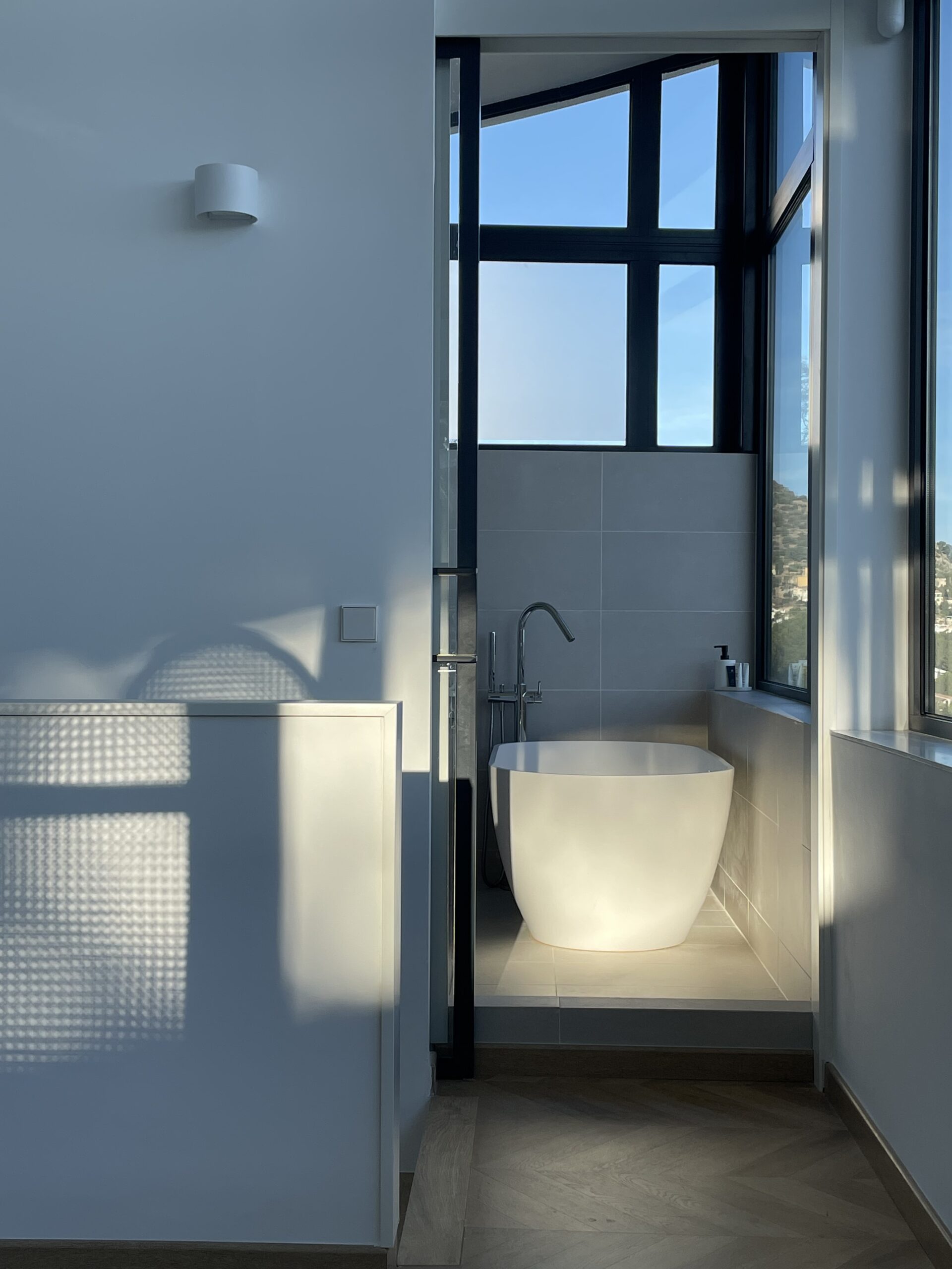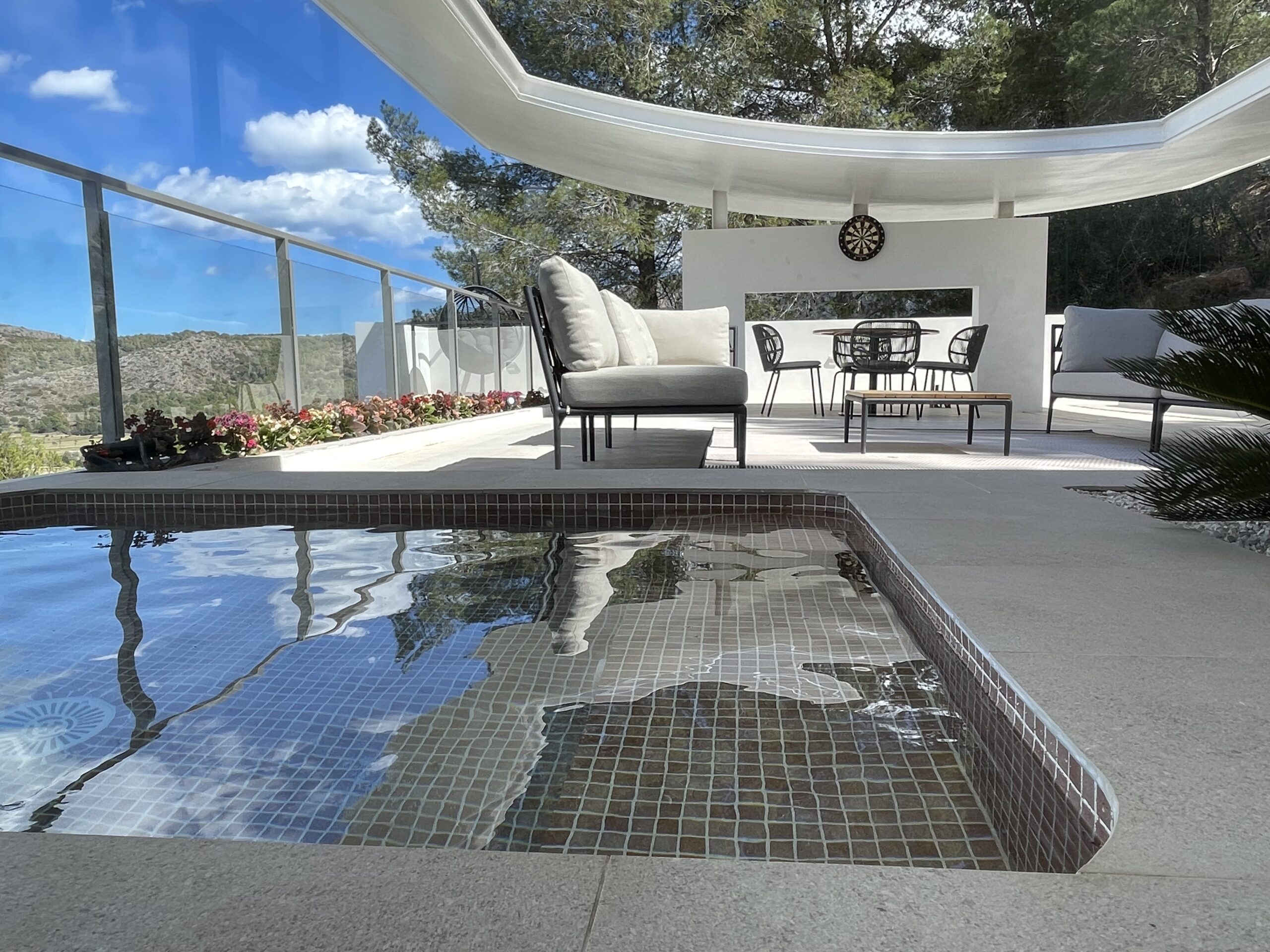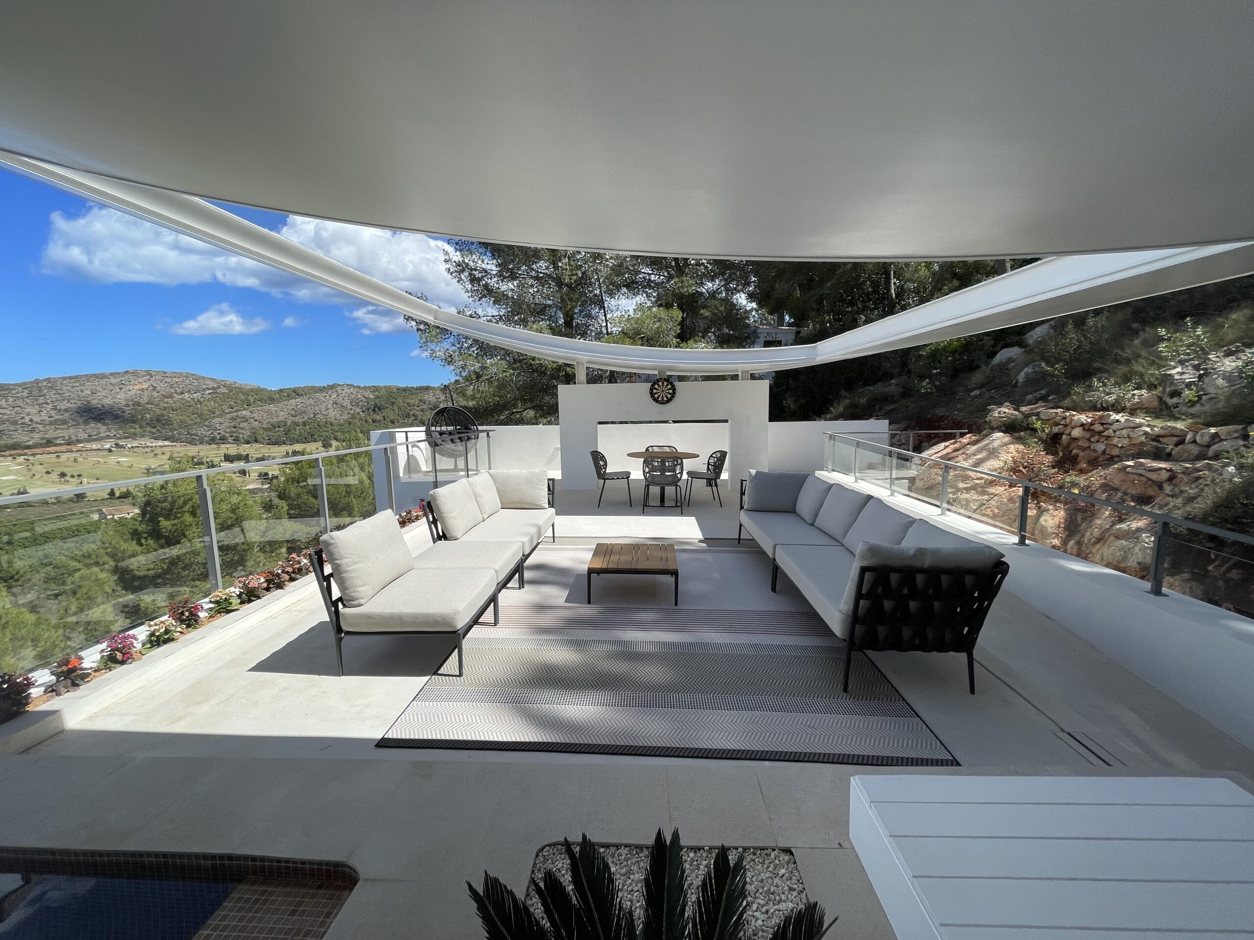 Taking advantage of the topography of the plot, the house is situated on a platform 6 metres above the Av. de la Marina Alta. The house is organised