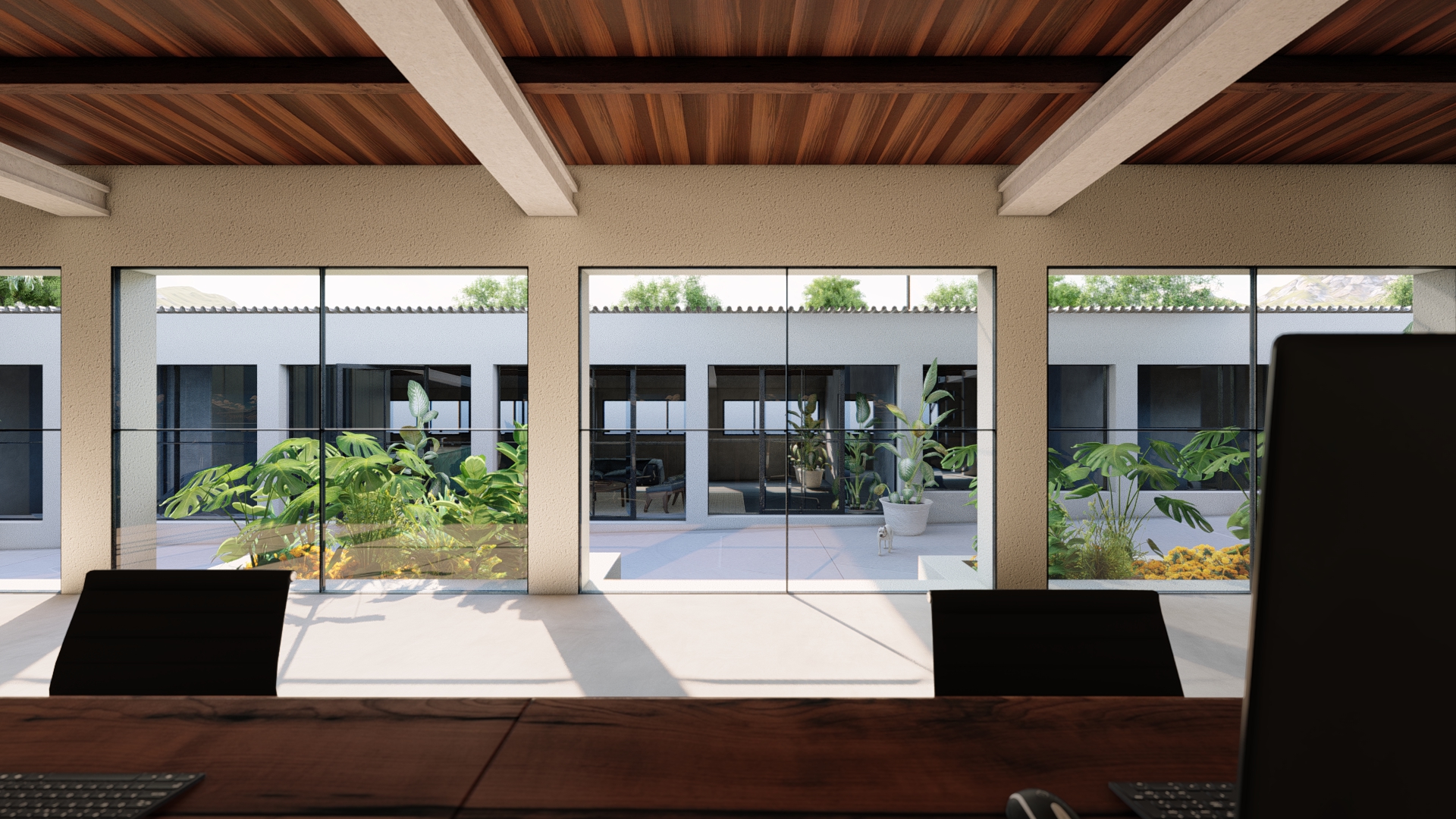 Einfache Architektur, Wiederverwendung vorhandener Bausubstanz, Minimierung des Abrisses.Die Struktur des Portikus löst die Umfassungsmauern auf und öffnet große Öffnungen, die die Innenräume zum gemeinsamen Innenhof hin ausrichten und eine natürliche Belüftung ermöglichen, die die Meeresbrise zum Montgó hin nutzt. Alle Außenwände sind wärmegedämmt und das Doppeldach minimiert die Sonneneinstrahlung auf das Gebäudevolumen, wodurch der
